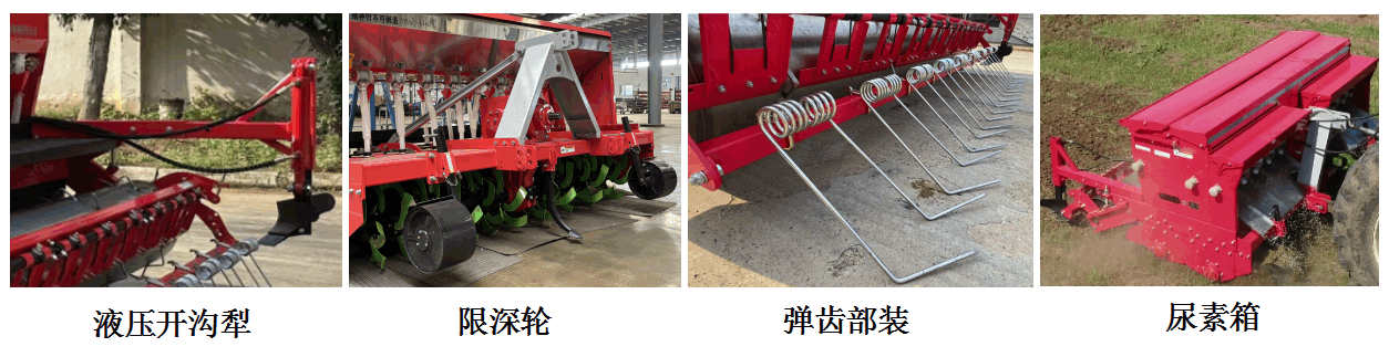 1、 6、一機多具選配多,跨區作業收益好選裝限深輪、防滑齒,鎮壓滾后彈齒適合松軟土質和沙土地耕種,覆土效果好,易調整,新手易上手跨區作業效益好。選裝液壓起壟犁,適合安徽、湖北等需增加排水溝區域耕作。