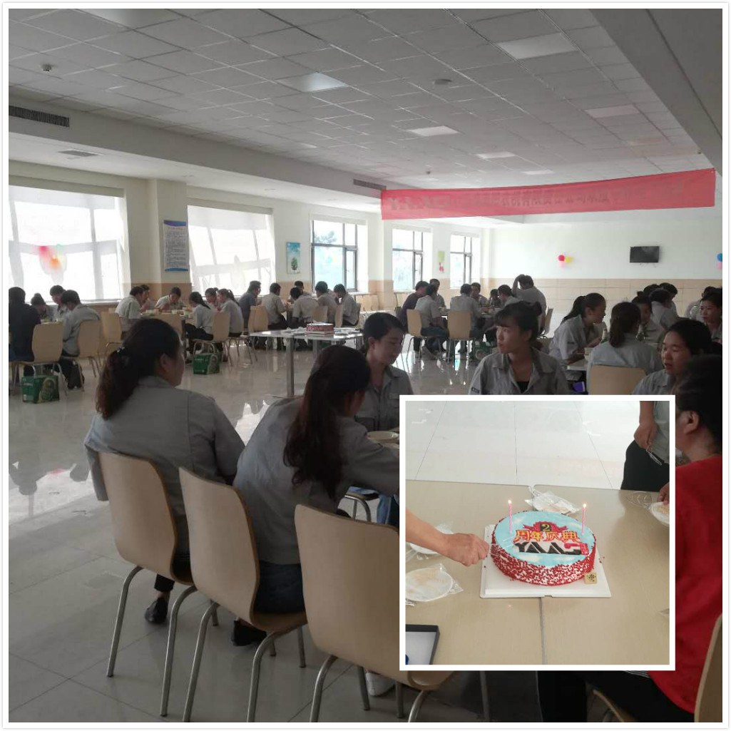 隨后,總經(jīng)理攜同公司主管共同切蛋糕。最后在工會(huì)主席耿莉莉的宣布下,集聚開始。