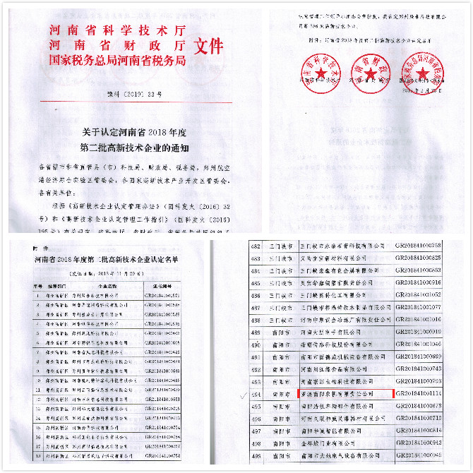 由河南省科學(xué)技術(shù)廳、河南省財(cái)政廳、國(guó)家稅務(wù)總局河南省稅務(wù)局,聯(lián)合頒發(fā)“高新技術(shù)企業(yè)”認(rèn)定證書,標(biāo)志著亞澳農(nóng)機(jī)在研發(fā)和創(chuàng)新方面的能力,得到了國(guó)家相關(guān)部門的肯定與認(rèn)可。