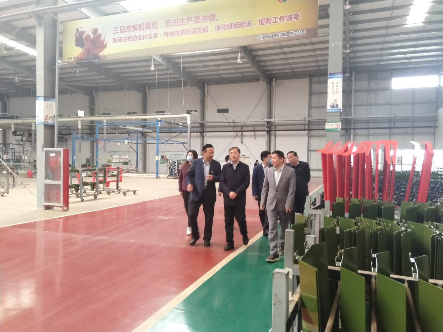 0421河南市兩委組織部領導考察團在唐河縣委書記周天龍、縣委副書記趙陽等領導陪同下蒞臨亞澳南陽農機進行考察調研。亞澳南陽農機總經理史炳哲先生詳細介紹了亞澳南陽農機全產業鏈模式。