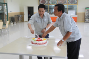 聚餐開始,在郭總的主持下,隨著蛋糕蠟燭的吹滅,大家共同為亞澳唱了一首生日快樂歌,隨后的擊鼓傳花環節使這種熱鬧推進一個高潮。就這樣大家在共同舉杯慶祝亞澳南陽一周年后,愉快的在歡聲笑語中共進午餐。